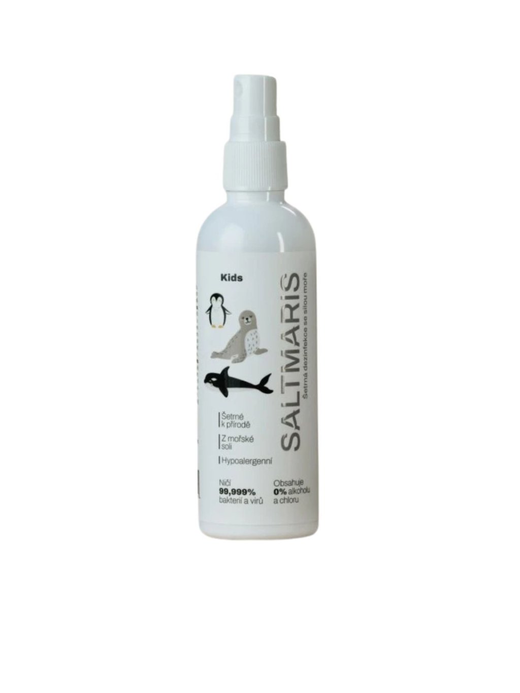 SALTMARIS Kids disinfectant is made using only water and sea salt and effectively combats a broad spectrum of bacteria, fungi, and viruses, including their mutations. It contains no alcohol, free chlorine, or other environmentally harmful chemicals. It is non-flammable, non-toxic, and does not dry out the skin. No protective equipment is required during use. The effectiveness of Saltmaris Kids significantly exceeds that of commonly available disinfectants.