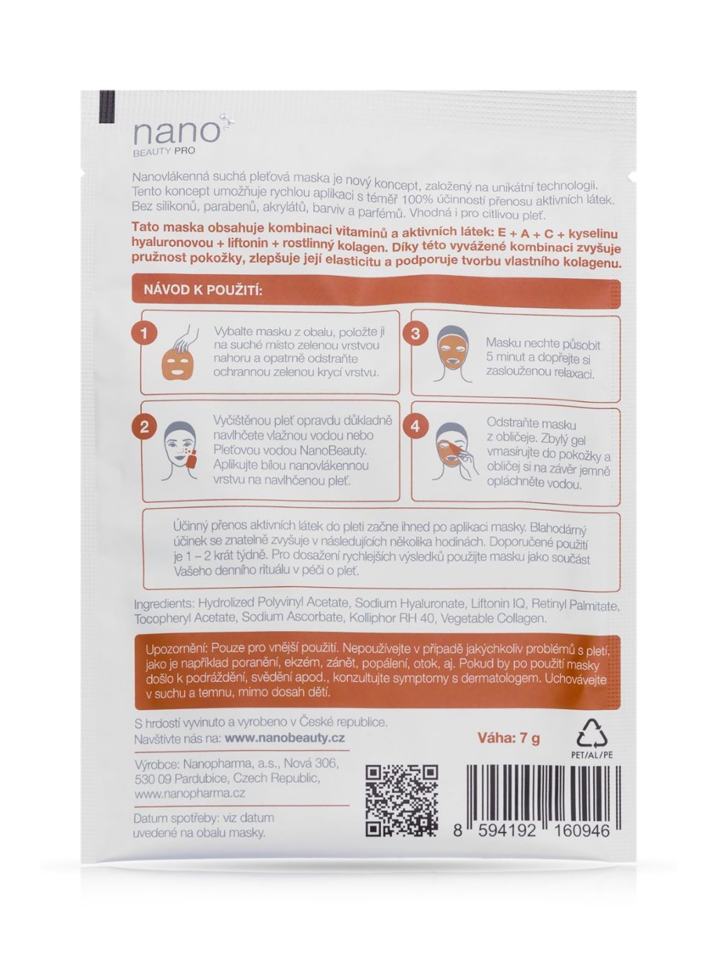 Thanks to the unique nanofiber technology, one of the best delivery systems for active ingredients in the world was created. It only takes water to activate the transport, it is not necessary to use any preservatives that are present in most conventional cosmetic products. The application is therefore gentle, effective, even, and very clean.